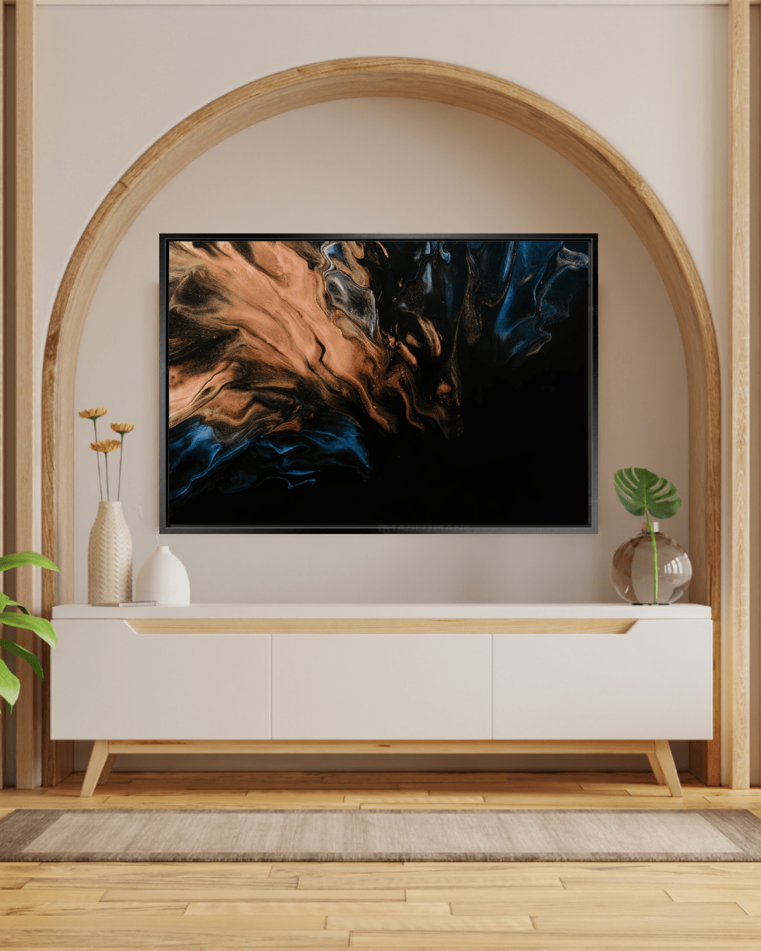 Tablo, %100 doğal ve sağlam ahşap şasiye gerilerek monte edilir. 3 cm’lik yan kenarlarda, görsel bütünlüğünü bozmadan devam eden baskı sayesinde çerçevesiz kullanımda da estetik bir görünüm sunar. Kenarlarda kesinti veya boşluk oluşmaz, böylece tablo her açıdan kusursuz görünür.
